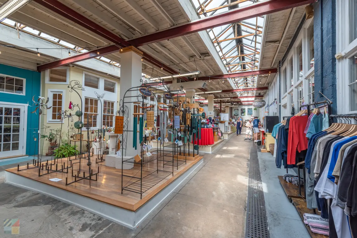 Protected from the elements and boasting a huge retail space, visitors will find a collection of shops with wares that pour out into the interiors main corridor, (although theres still plenty of elbow room for dozens of shoppers to meander at once.)