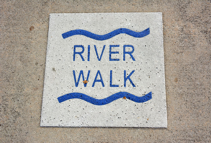 The Riverwalk itself is wooden, with heavy but unimposing concrete railings toprotect walkers from the drop to the water below, and leads through the heart of Wilmington's downtown. Popular with joggers and runners, the Riverwalk is also lighted at night with decorative hanging street posts, and also has benches and embedded stools throughout the route for visitors who want to sit down, relax, and enjoy the salty breeze.